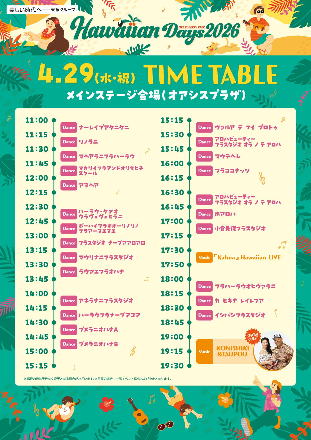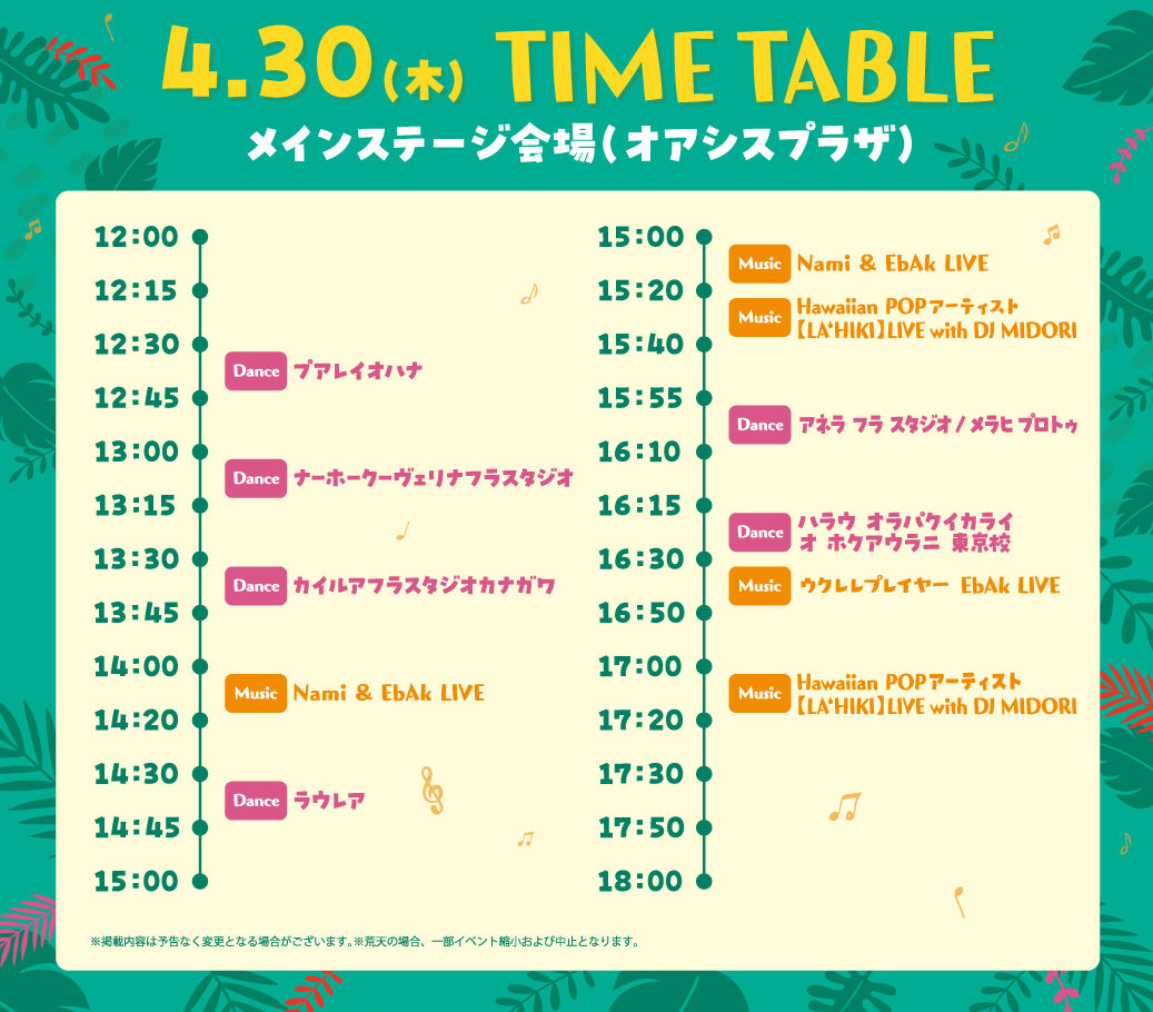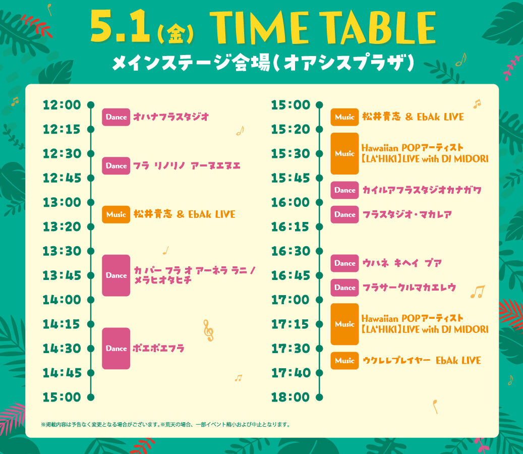 ■※天候によって予告なくステージの内容を変更・中断・中止する可能性がございますので予めご了承ください。